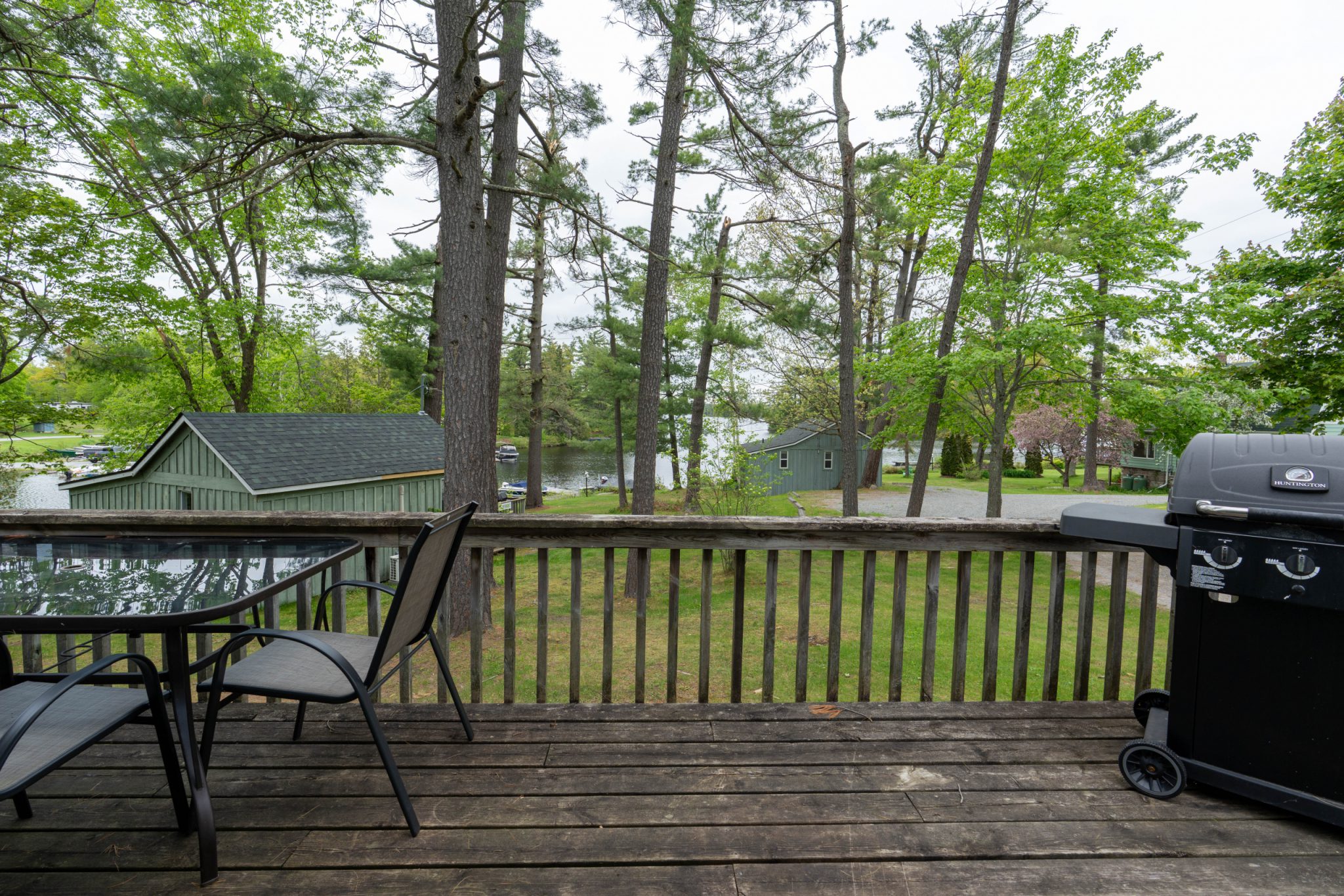 The Pines #2 is a two-bedroom resort townhouse overlooking the water. It features a deluxe interior with a fully equipped kitchen, living and dining room . Two sets of patio doors open onto a spacious deck. The master bedroom contains a queen bed and the second bedroom has twin beds.